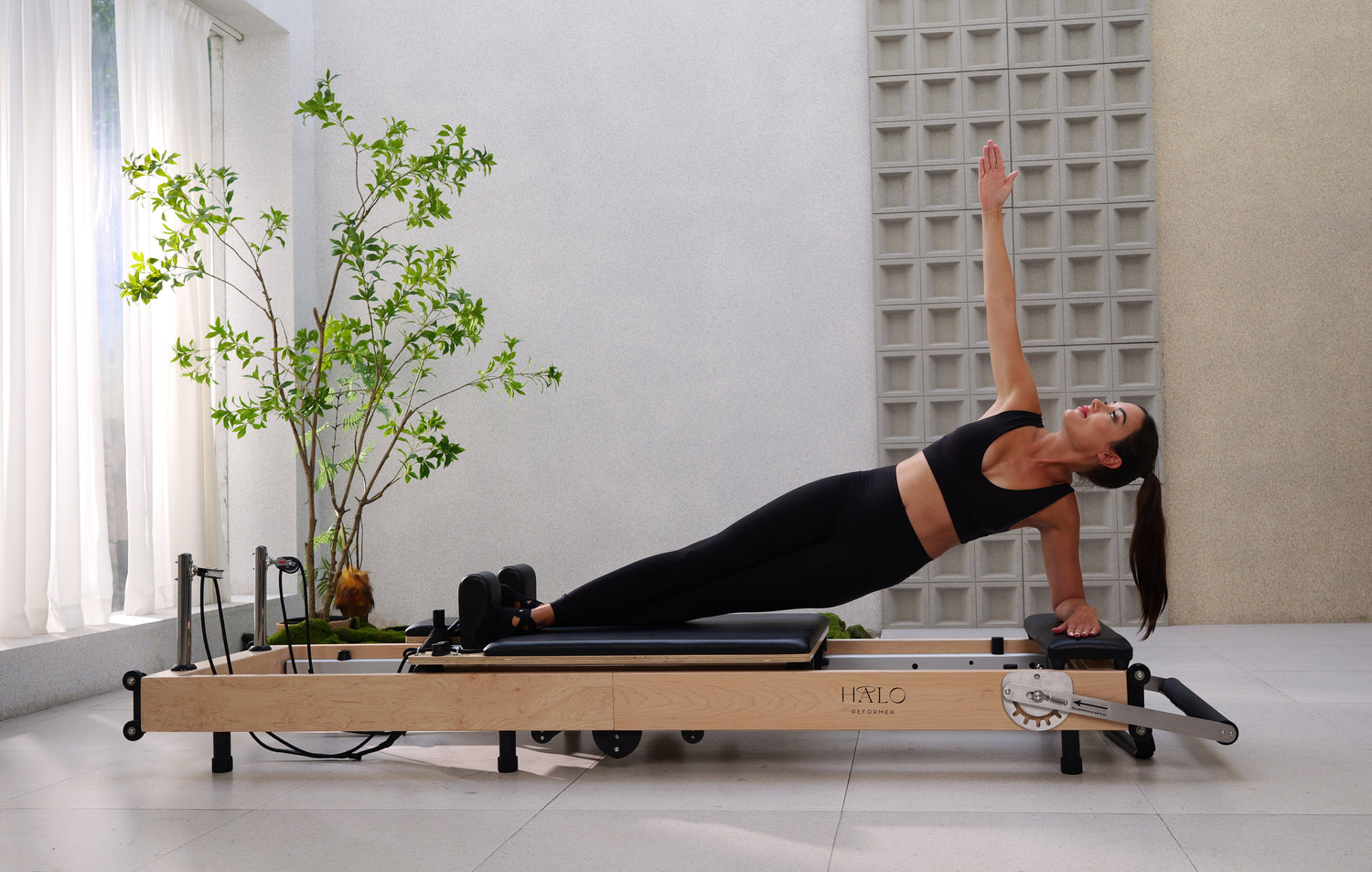 The Halo Reformer offers premium studio features with a space-saving, foldable design.